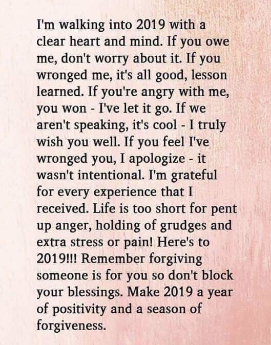 For 2019, I’m avoiding the cliches and resolutions. I used to make lists of what I wanted to accomplish which often lead to more stress to complete said items, or feeling the frustration when things didn’t work out. Not this time. For 2019, I’m basing everything off something a friend from grade school posted this morning. I’m not sure why it hit me, but it did.